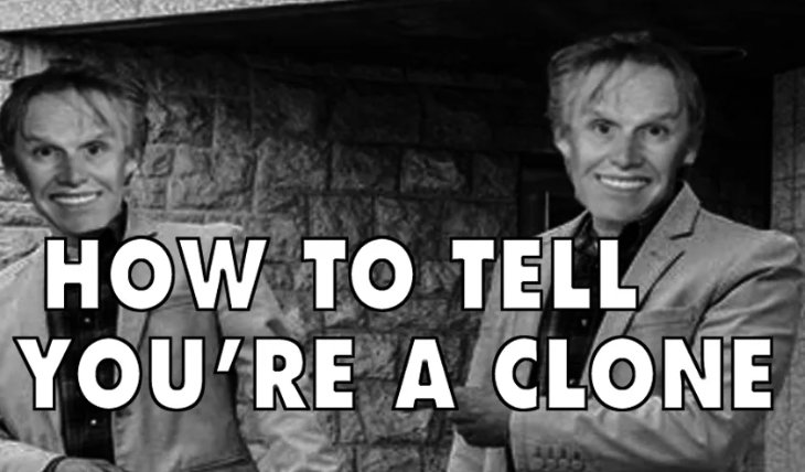 But in the meantime, remember folks: they say your “twin” is out there somewhere. Maybe in another state. Or another country. Or maybe the clone you are looking for is a lot closer than you think. Perhaps right under your nose.
